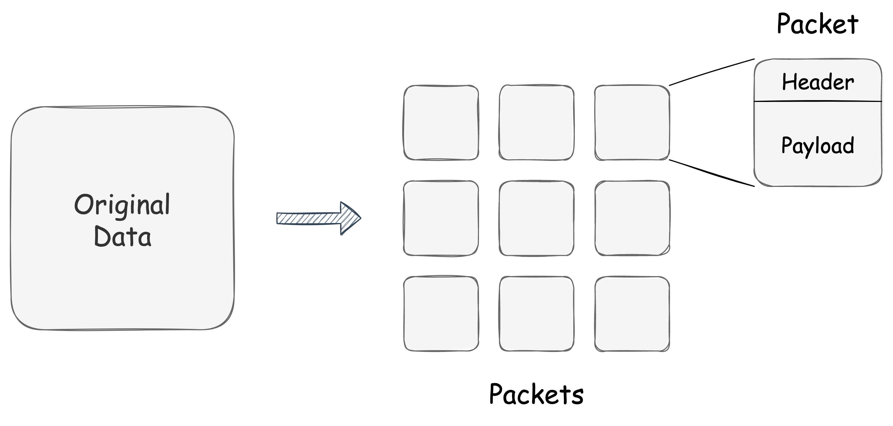 - 하나의 패킷은 헤더(데이터의 정보, 보내는 곳, 최종 목적지)와 페이로드(전송되는 데이터)로 이루어짐