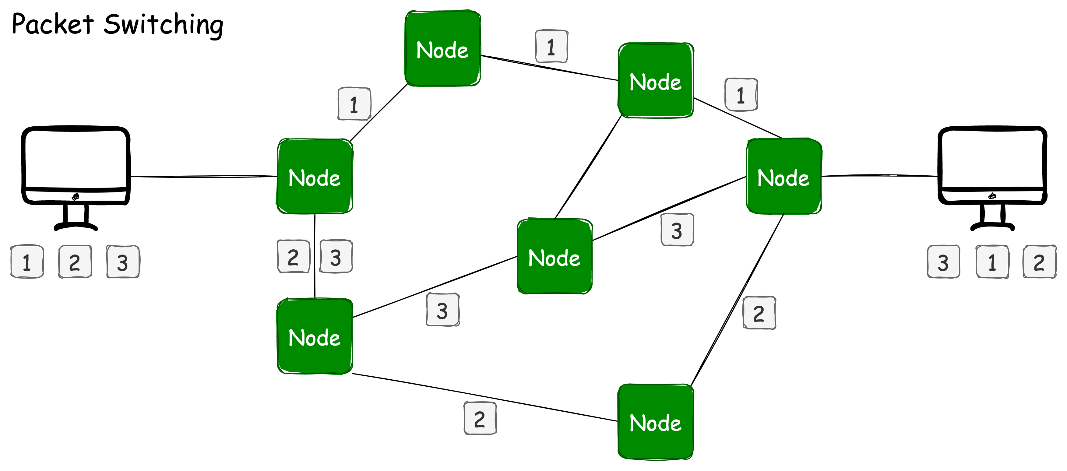 - 회선 교환(Circuit Switching) 방식의 단점을 극복하기 위해 패킷 교환(Packet Switching) 방식 탄생