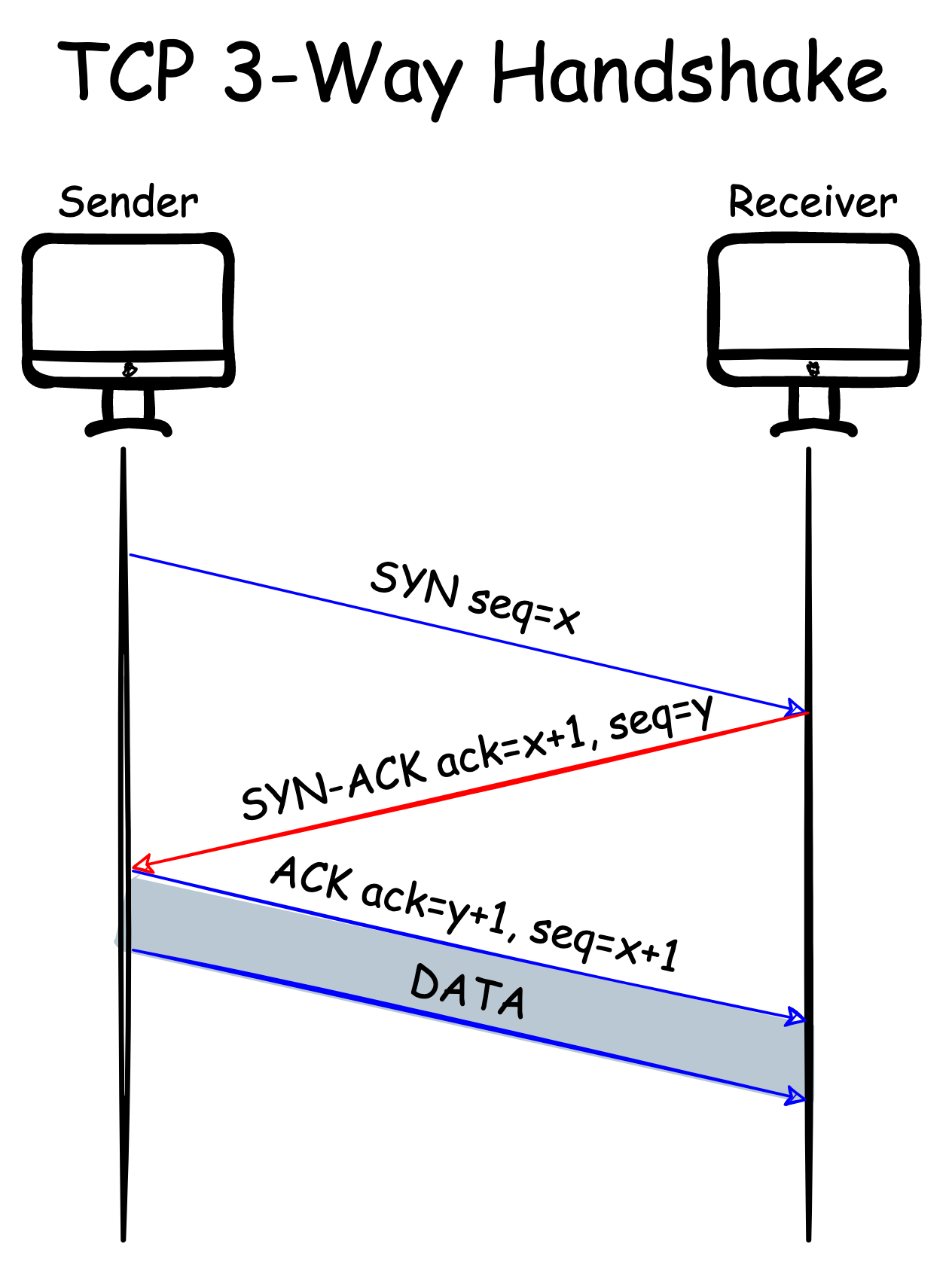 위 그림은 Sender와 Receiver 사이의 TCP 3-Way Handshake를 보여준다.