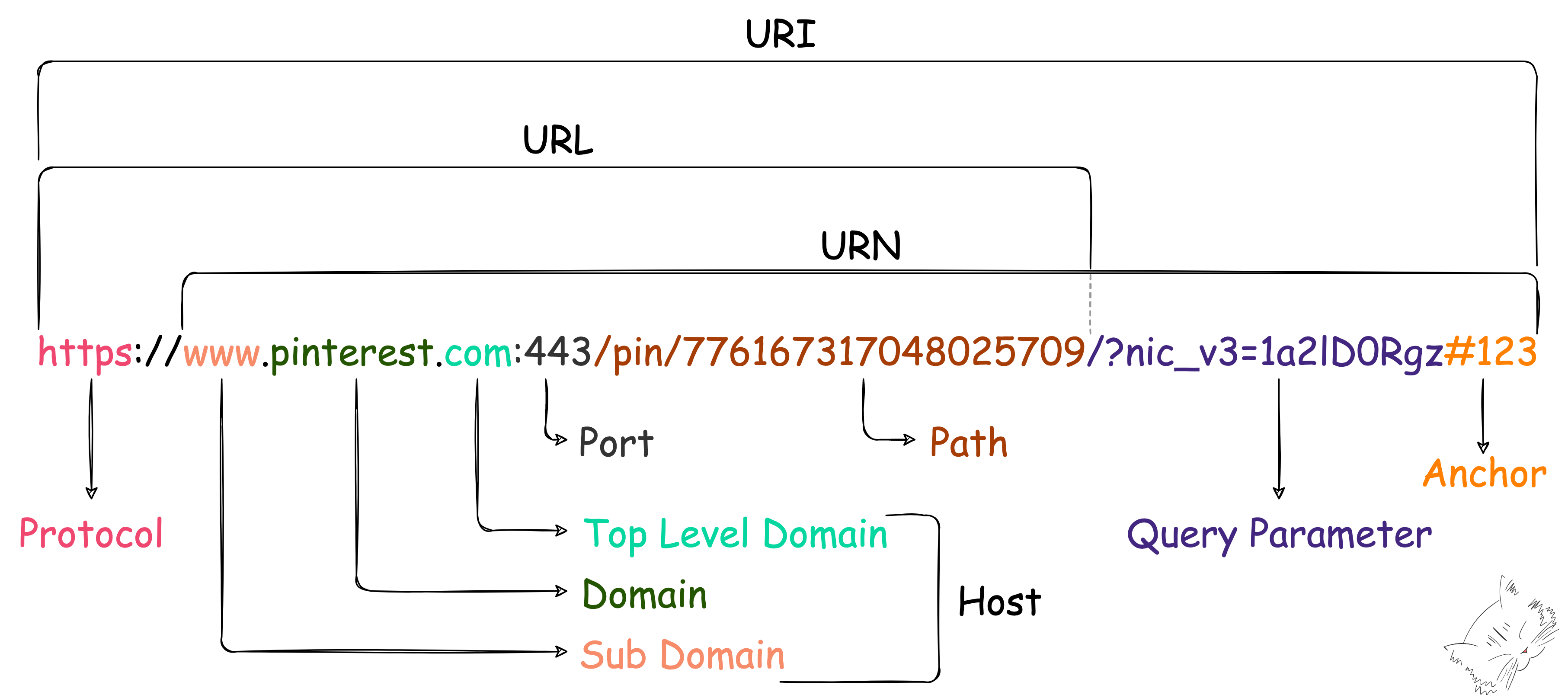 Scheme(Protocol), Host, Port, Url-Path에 더해 Query와 Anchor를 포함한다.