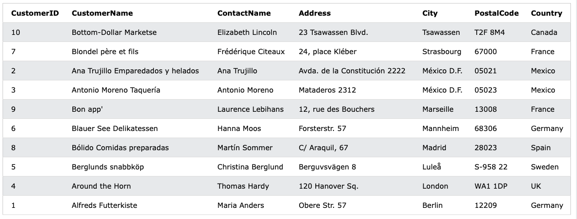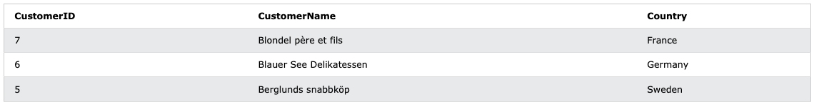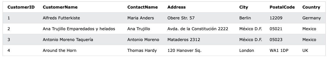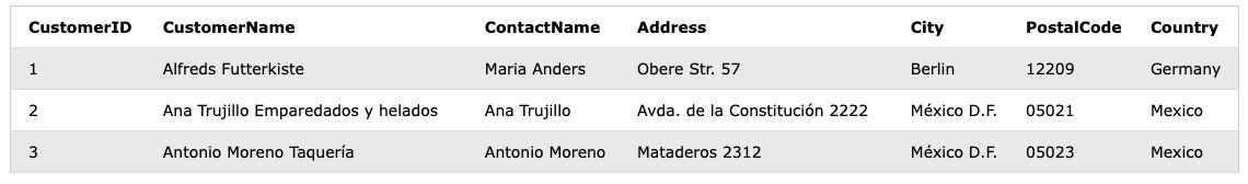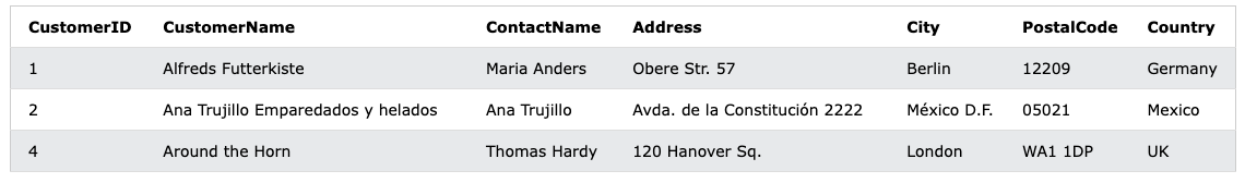 WHERE CustomerID <= 3;