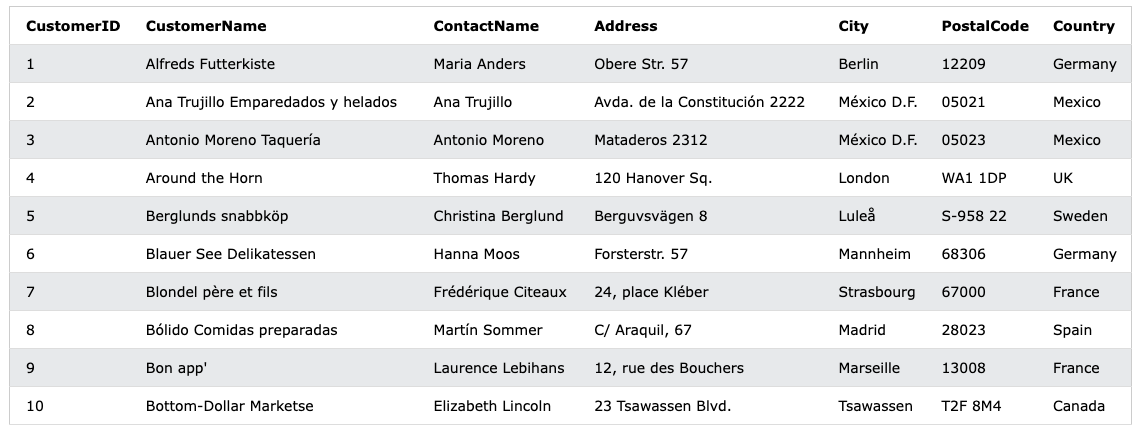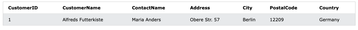 WHERE CustomerName = 'Alfreds Futterkiste';
