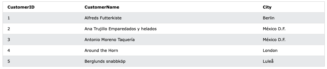 SELECT CustomerID, CustomerName, City FROM Customers