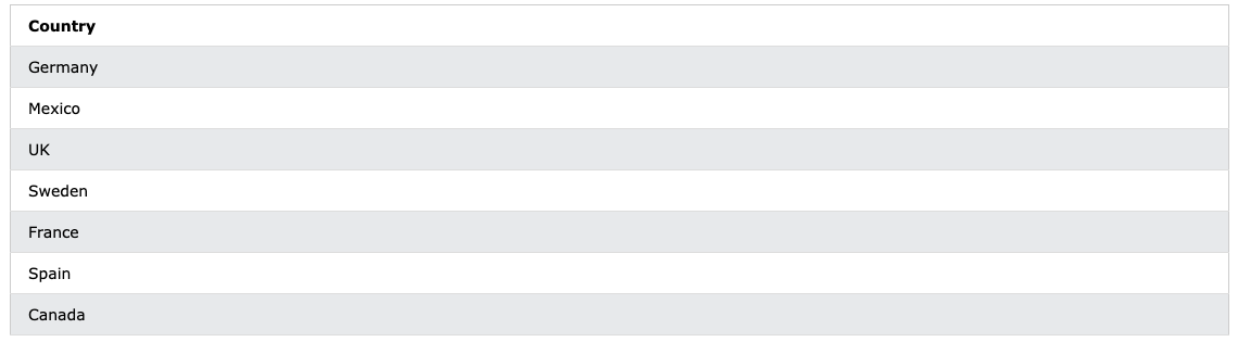 GROUP BY Country;