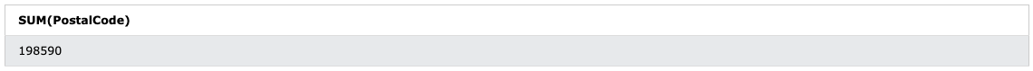 SELECT SUM(PostalCode) FROM Customers;