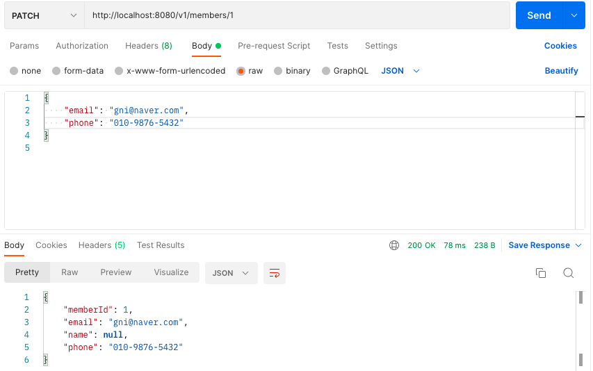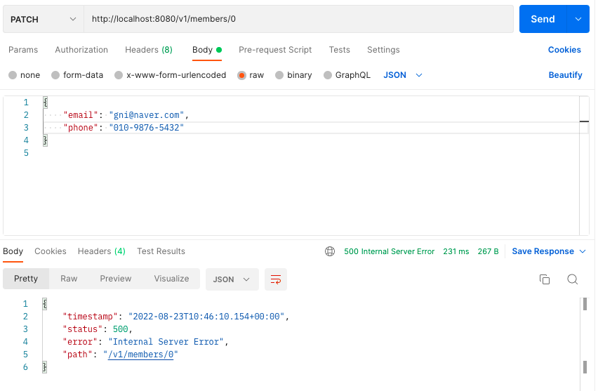 마지막으로 patchMember() 메서드의 URI path에 @PathVariable("member-id") long memberId에 대한 검증이다.