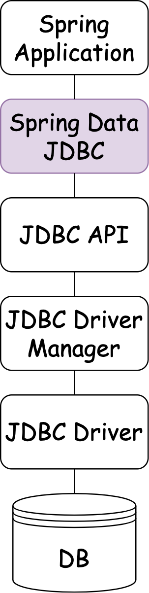 이는 Spring Data JDBC가 Hibernate ORM을 사용하지 않기 때문이며, 아래 그림을 보면 좀 더 명확하다.