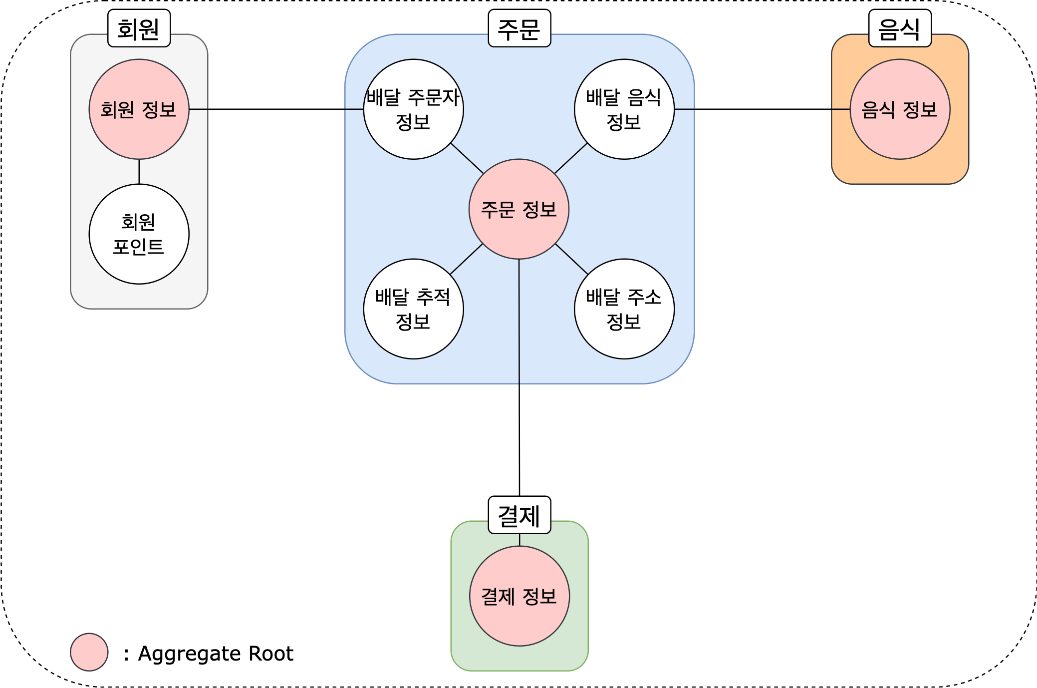 여기서 Aggregate는 회원, 주문, 음식, 결제와 같은 비슷한 업무 도메인의 묶음을 말한다.