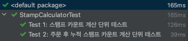 @DisplayName("Test 2: 주문 후 누적 스탬프 카운트 계산 단위 테스트")