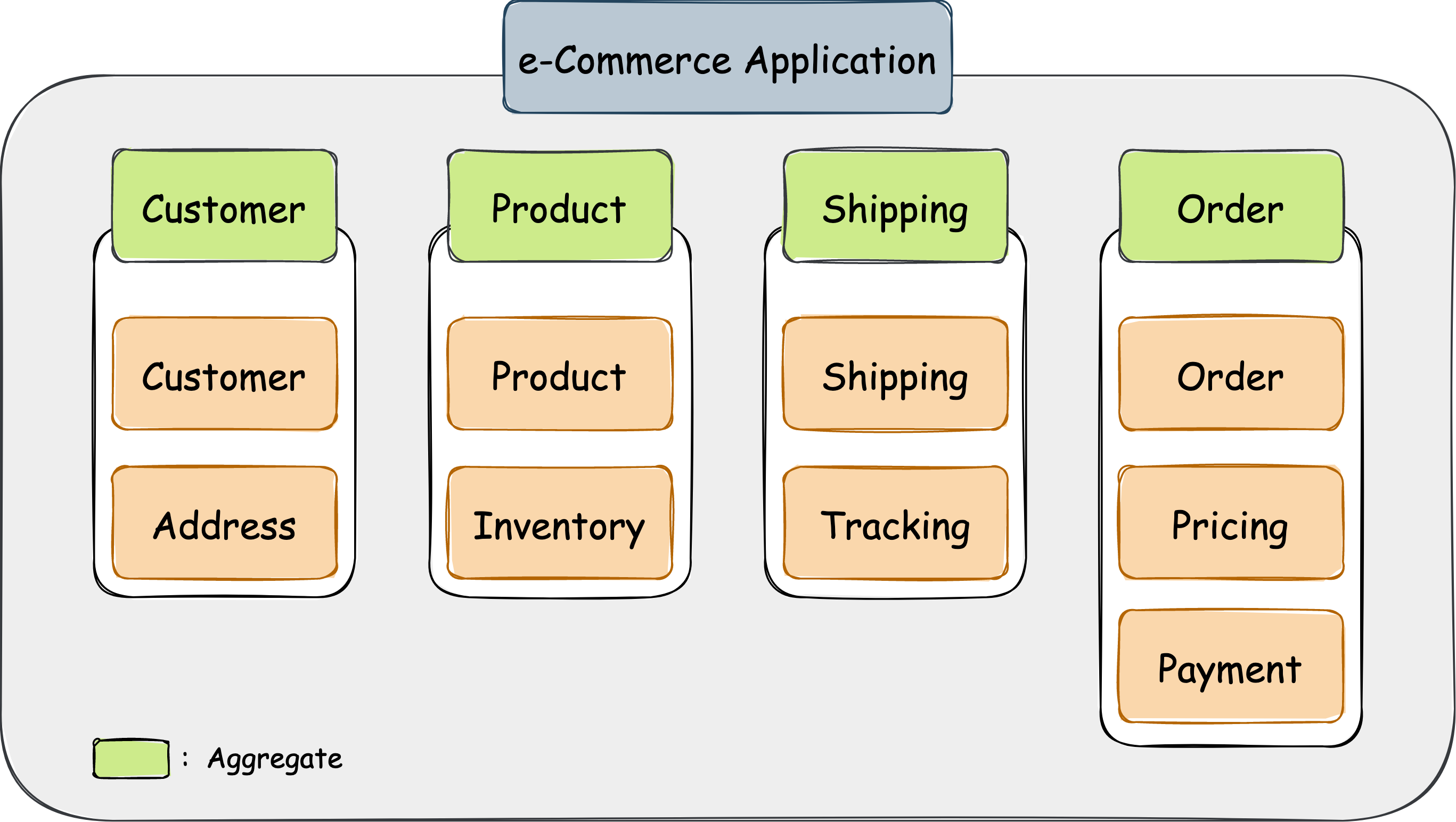 Bounded Context는 이렇게 정의된 Aggregate를 포함하는 개념이라고 할 수도 있는데,