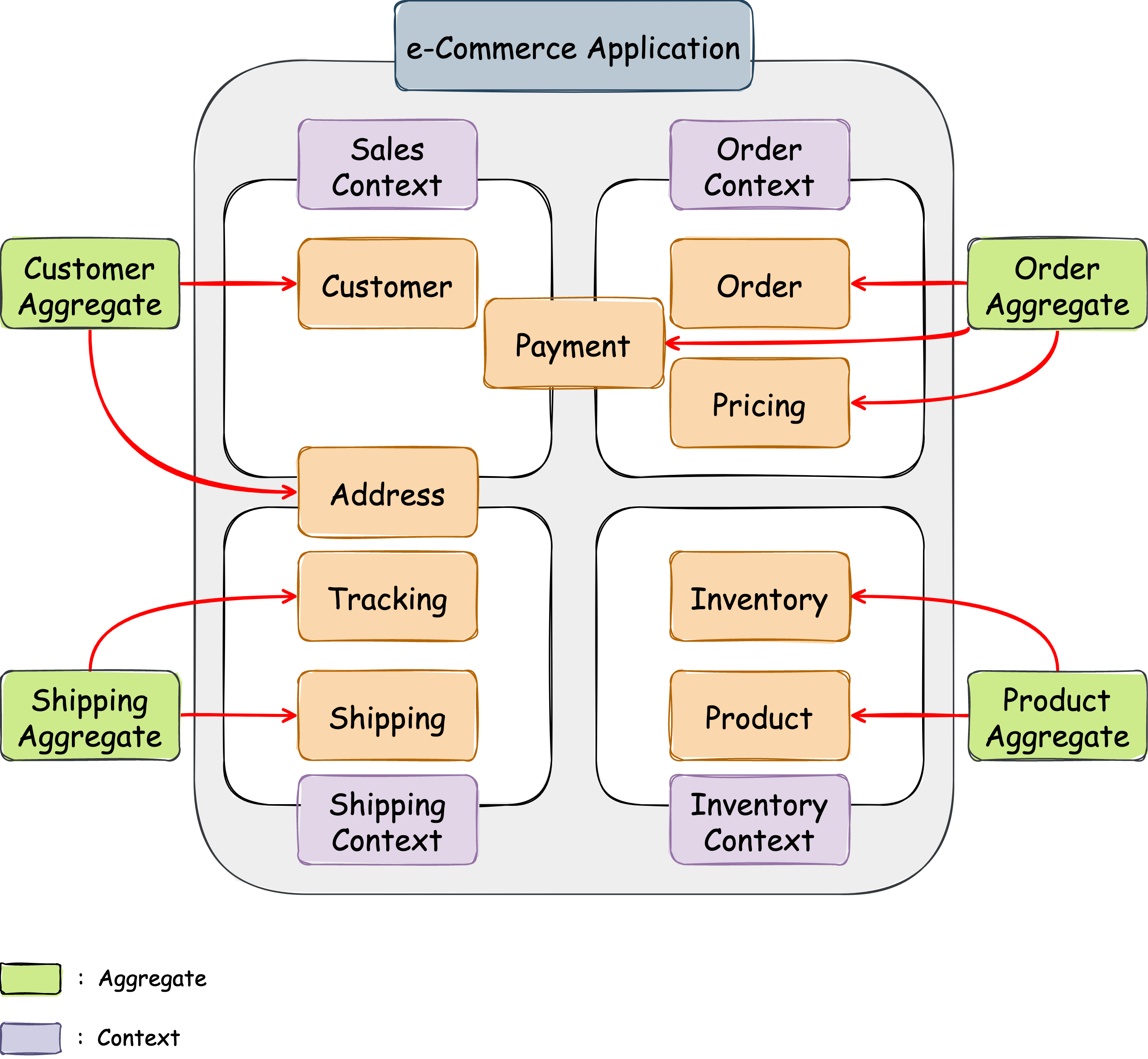위의 예에선 Shipping Aggregate와 Product Aggregate는 각각 하나의 컨텍스트에 속하지만