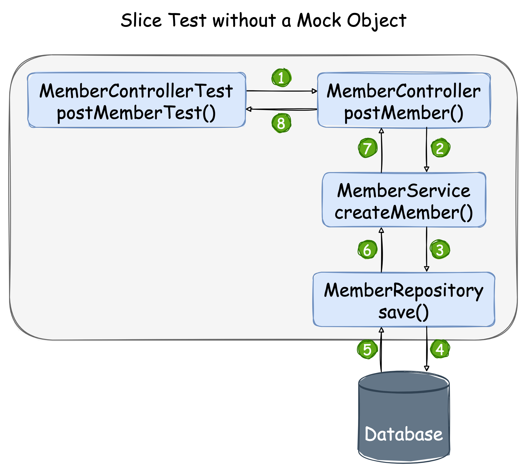 슬라이스 테스트의 목적이 해당 계층 테스트에 집중하는 것임을 감안하면 좋은 흐름은 아니라고 할 수 있다.