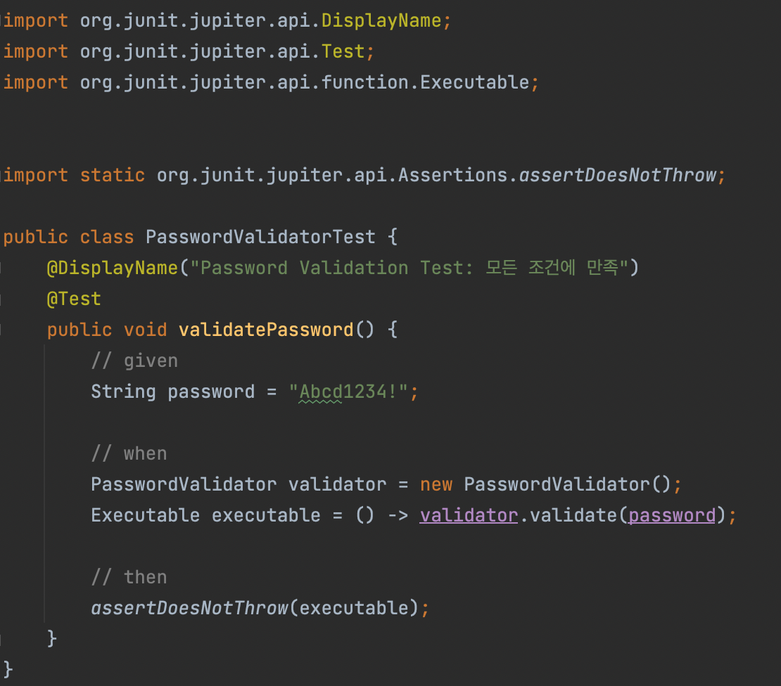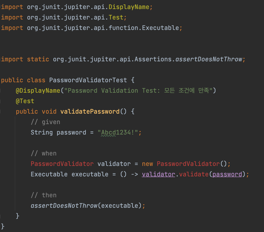 @DisplayName("Password Validation Test: 모든 조건에 만족")