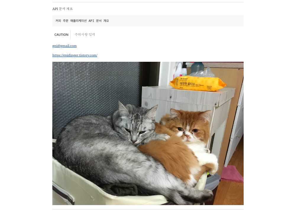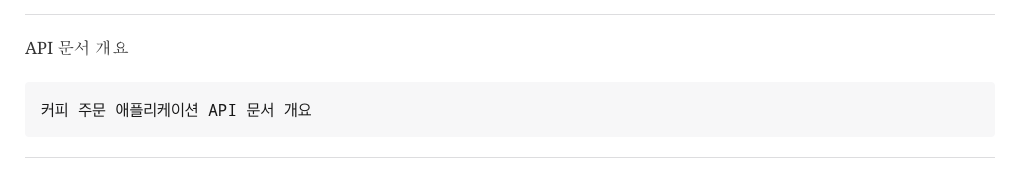 커피 주문 애플리케이션 API 문서 개요 // 한 줄 띄운 후 한 칸 들여쓰기로 박스 문단 생성 가능