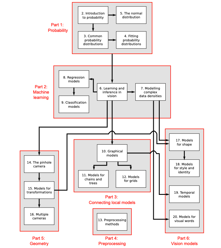 총 여섯 개의 부분으로 나누어져 있으며, 각 부분은 컴퓨터 비전의 핵심 개념과 관련된 주제를 다룬다.