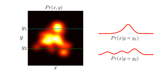조건부 확률 $Pr(x|y=y^*)$는 결합 확률 분포(joint distribution) $Pr(x,y)$에서 얻을 수 있다.