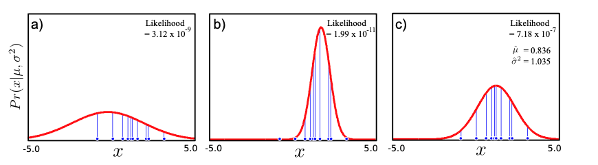 이때의 목표는, 주어진 데이터로부터 $\mu$와 $\sigma^2$를 다시 추정(피팅)하는 것이다.