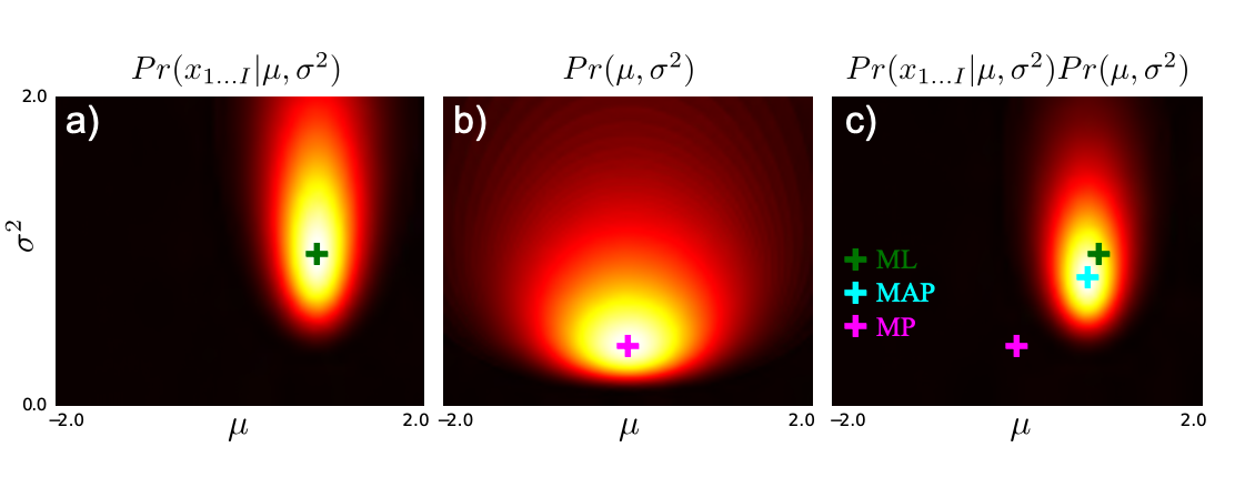 MAP에서는 사후 확률 $Pr(\mu, \sigma^2 | x_1, \dots, x_I)$를 최대화하는 $\mu$, $\sigma^2$를 찾는다.