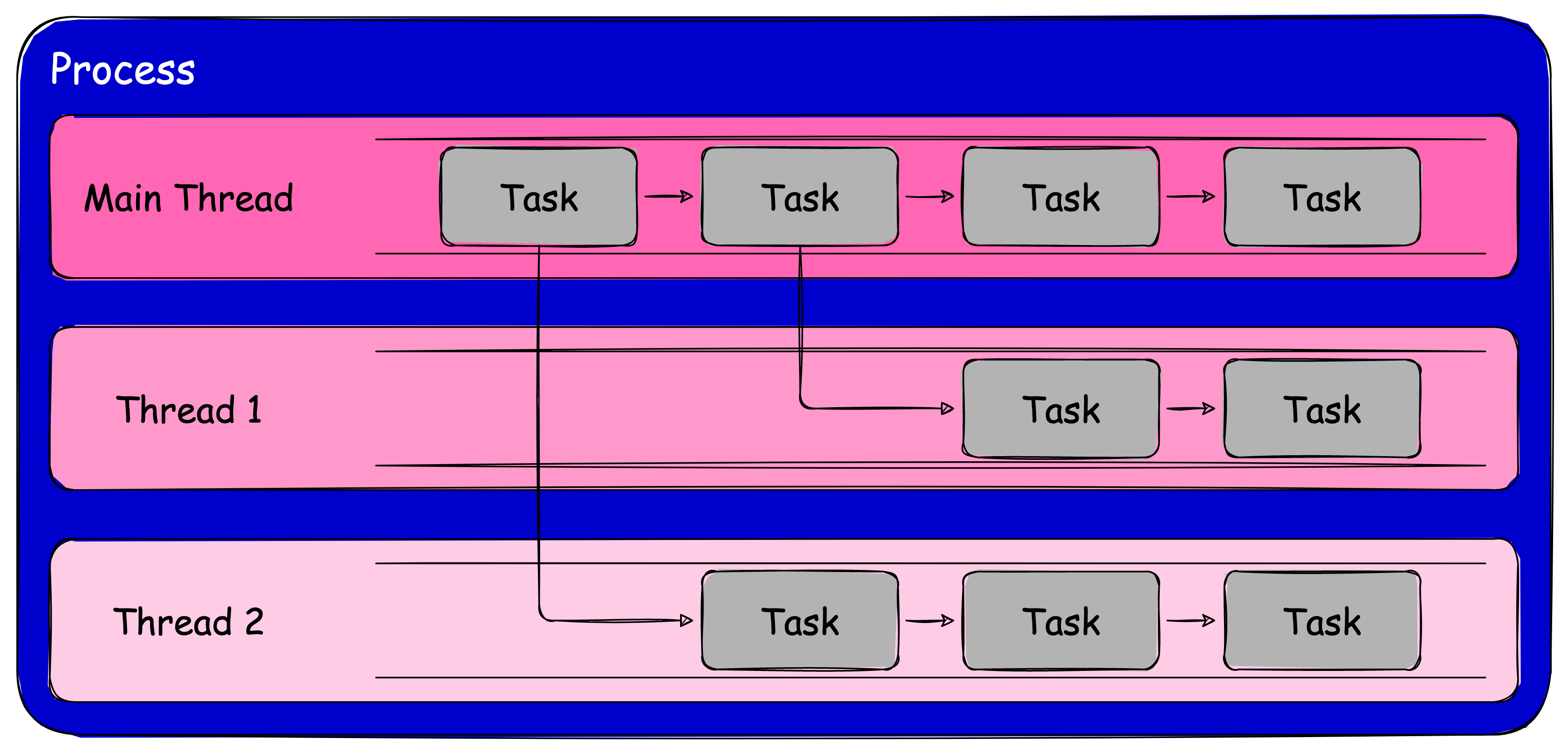 당연하게도 모든 프로세스에는 기본적으로 하나 이상의 스레드가 존재한다.