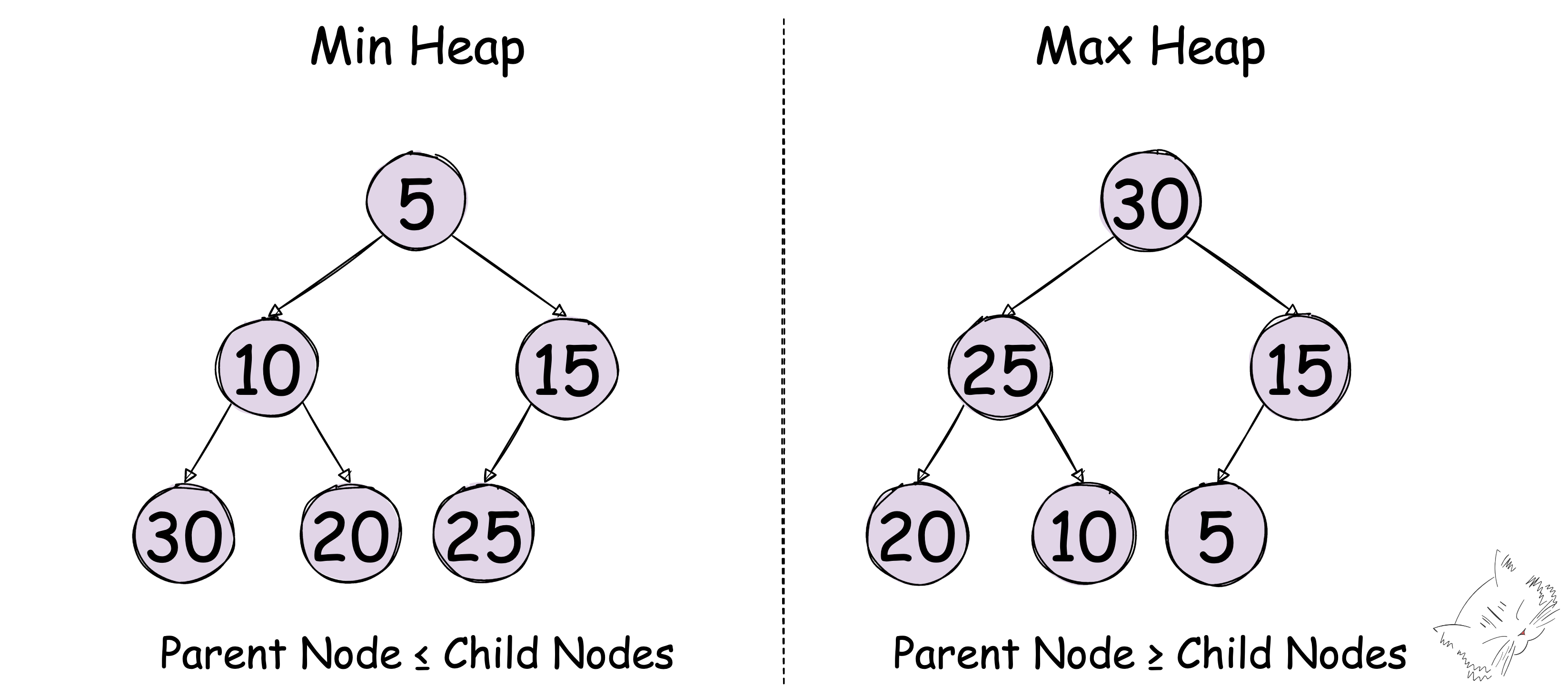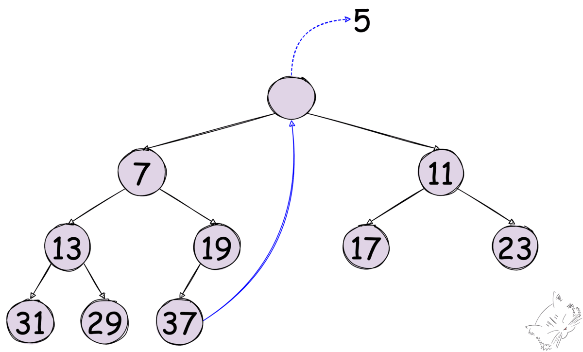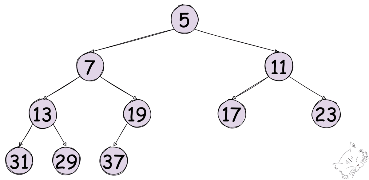 - 부모보다 작은 자식이 둘 있으면 둘 중 작은 값을 가진 노드와 교환한다.