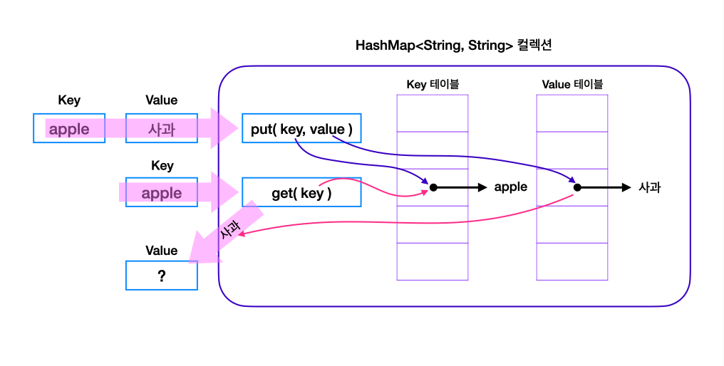 여기서 중요한 사실은 키는 중복저장될 수 없지만 값은 중복저장이 가능하다는 점이다.