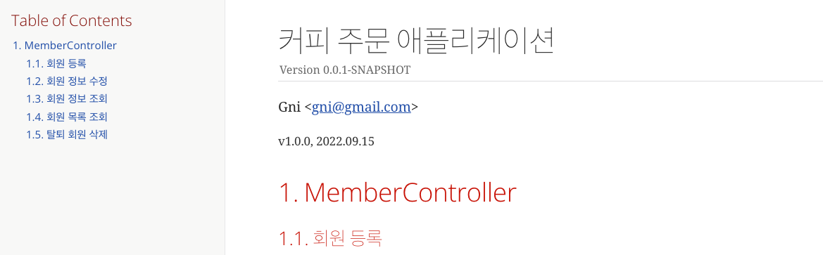커피 주문 애플리케이션 API 문서 개요 // 한 줄 띄운 후 한 칸 들여쓰기로 박스 문단 생성 가능