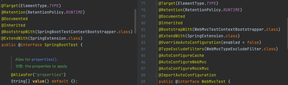 하지만 이번 글에선 @WebMvcTest 하나만 사용하고 있는데, 둘의 차이는 무엇일까?